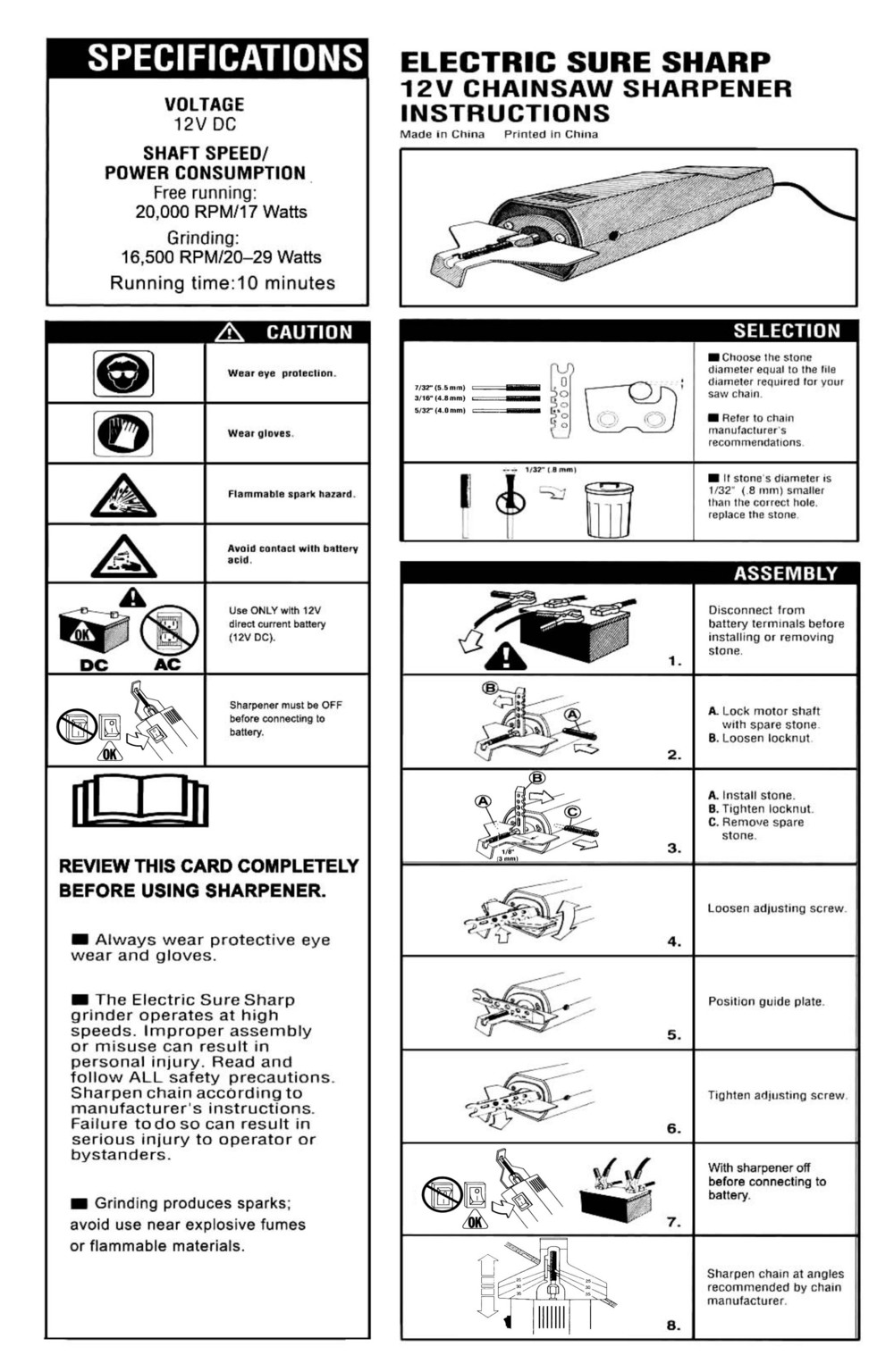 This durable and accurate 12 volt grinder offers an economical way to sharpen your saw chain accurately and quickly. Runs on a standard 12 volt automotive type battery.