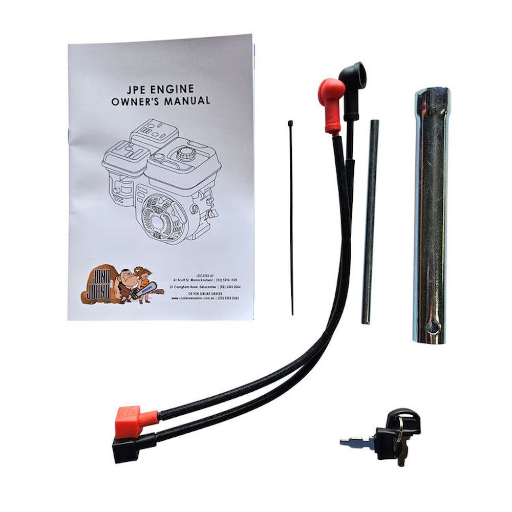 This engine is a Jono & Johno brand, electric start, 4 stroke, single cylinder, reduction drive, petrol engine with a 7hp output.