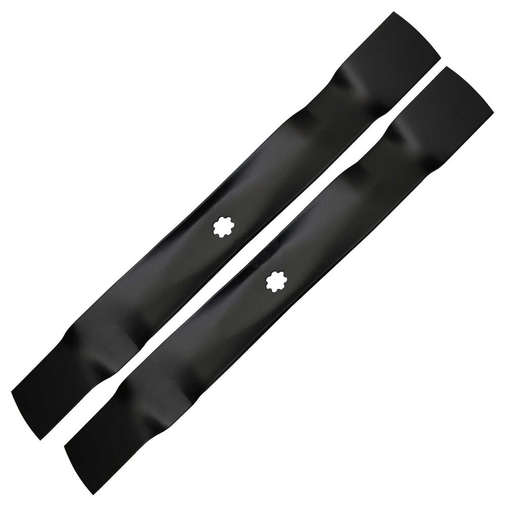 Here we have a pair of bar blades to suit John Deere ride-on mowers with a 42" cut deck (see below for a list of specific models).