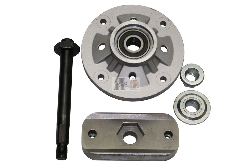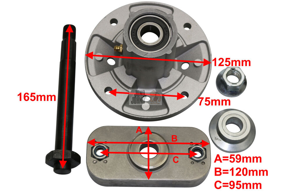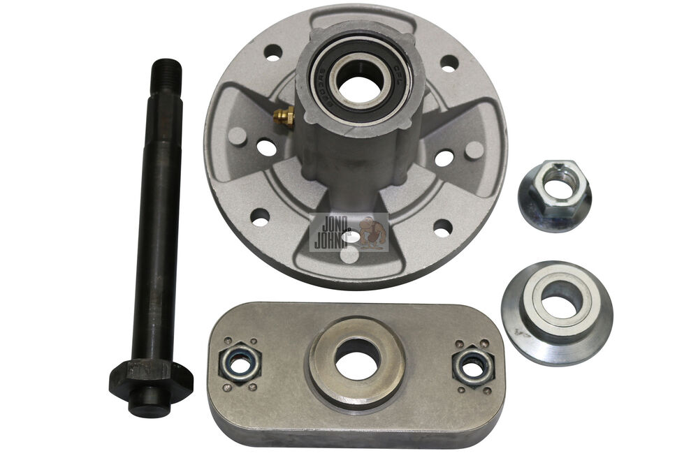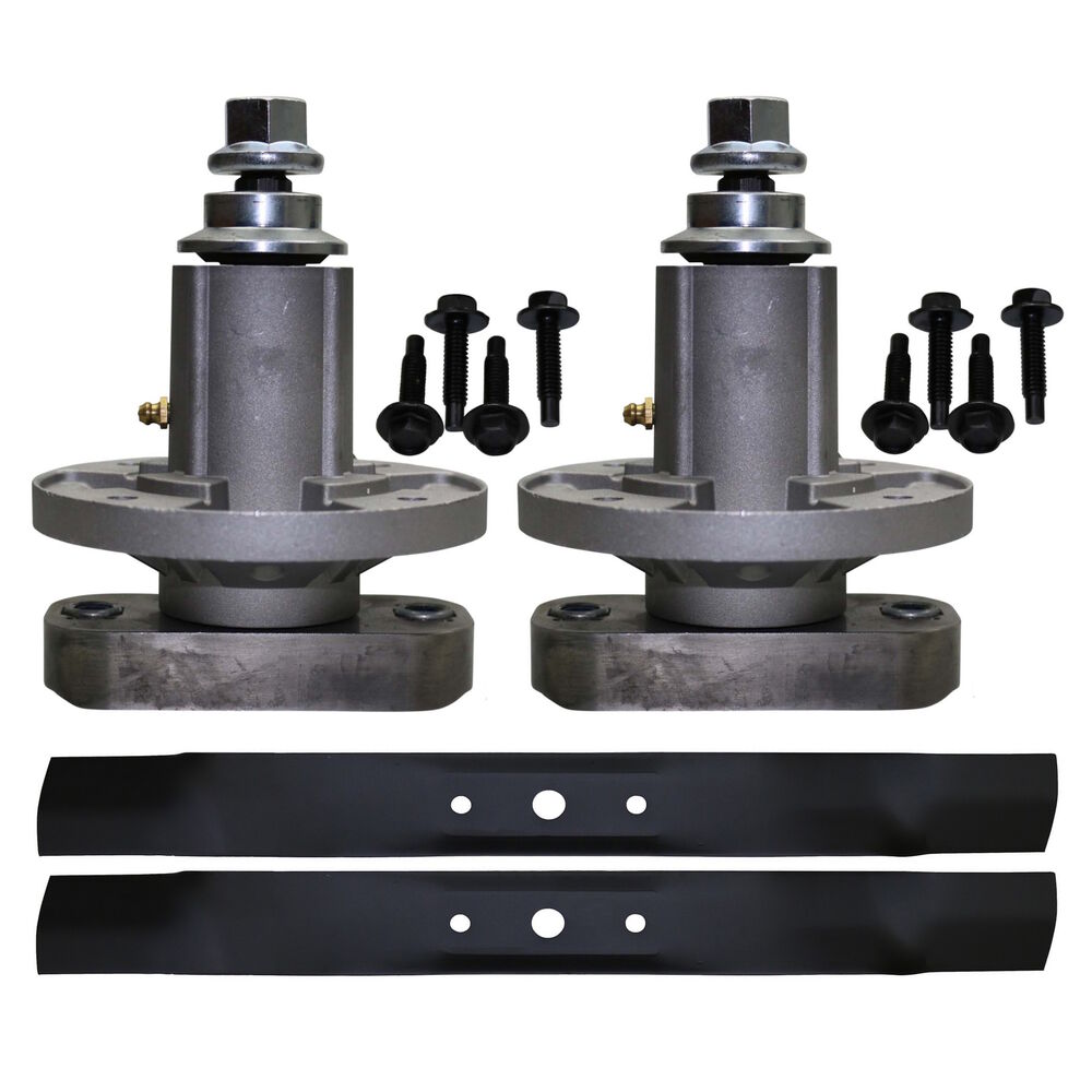 Here we have a kit made of a pair of spindles and a pair of bar blades to suit John Deere ride-on mowers with a 42" cut deck (see below for a list of specific models).