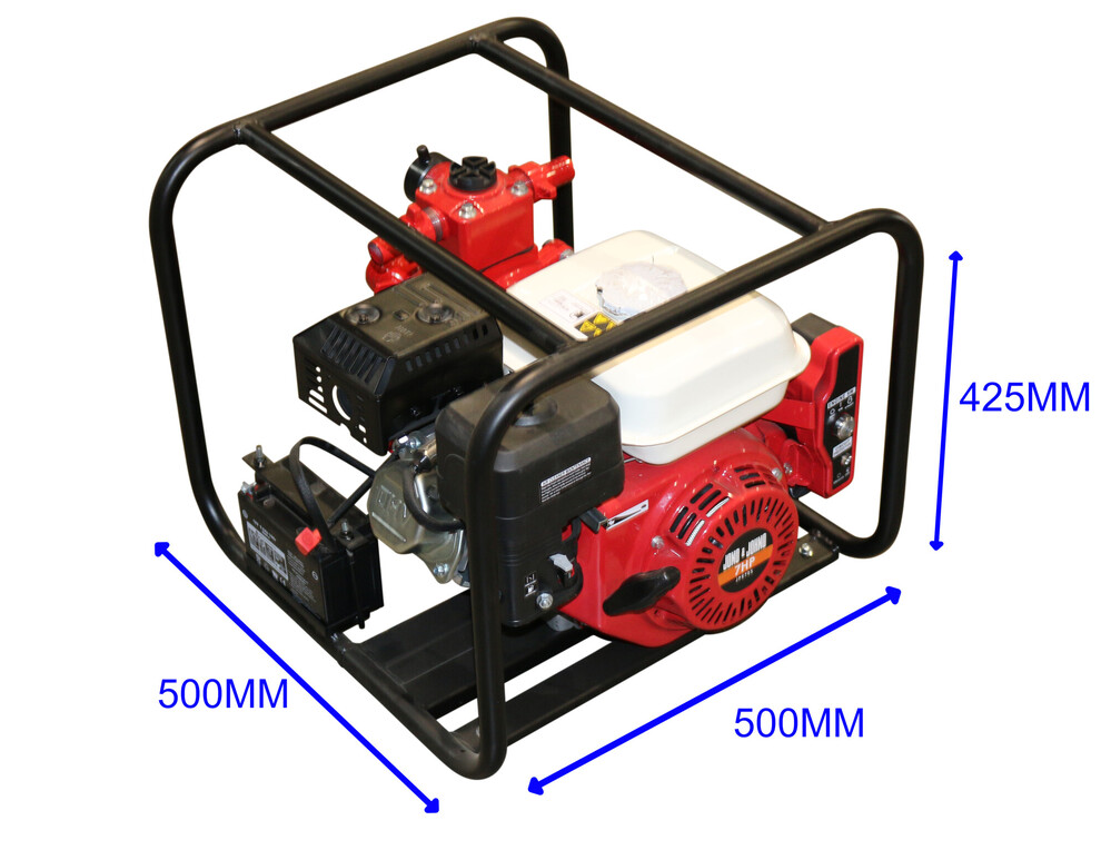This Jono & Johno fire pump comes equipped with a twin impeller to achieve maximum pressure. It has an electric start system so it is quick to start when the need arises. It also has a single 1.5" outlet or two 1" outlets if you wish to use two hoses at the one time.