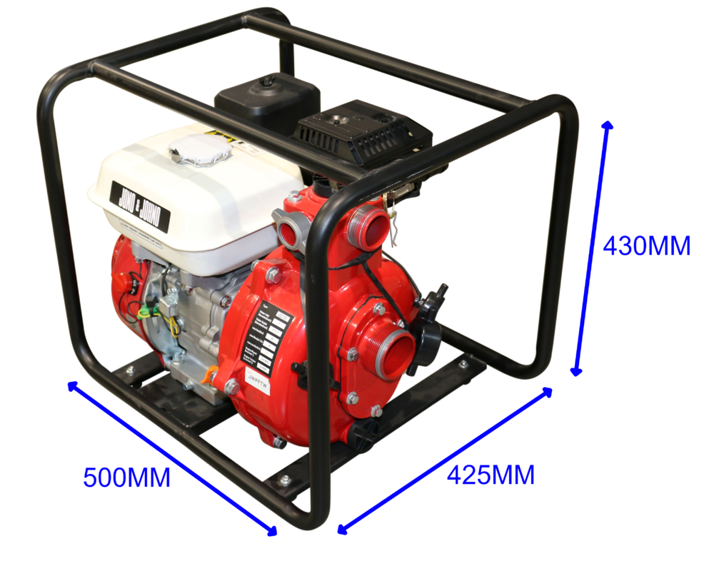 This Jono & Johno fire pump has a twin impeller and a recoil start. It also has a single 1.5" outlet or two 1" outlets if you wish to use two hoses at the one time.