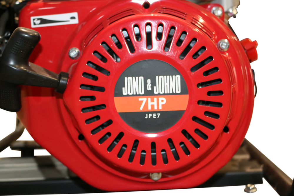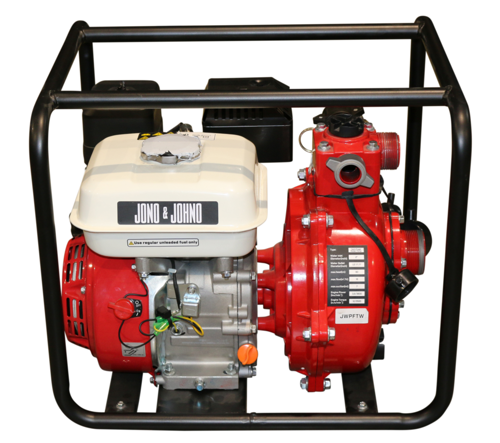 This Jono & Johno fire pump has a twin impeller and a recoil start. It also has a single 1.5" outlet or two 1" outlets if you wish to use two hoses at the one time.