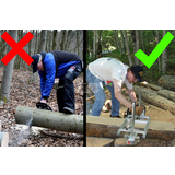 This tool has a parallel bar that can have it's distance adjusted from the chainsaw bar to provide different thickness slabs. The first slab is cut by using a couple of guide rails placed and secured onto the top of the log. You can then mill slabs between 1/2" to 13" thick.