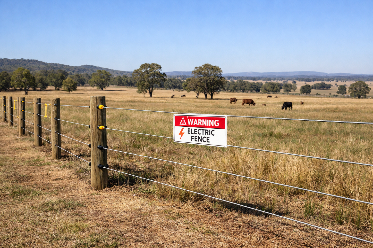 These fences usually use high-tensile wire, timber or steel posts, and heavy-duty insulators designed to handle outdoor conditions year-round.