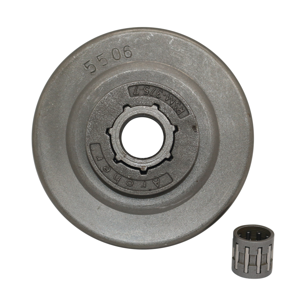 A spur sprocket incorporates the drive into the drum so that it is one continuous piece of metal.