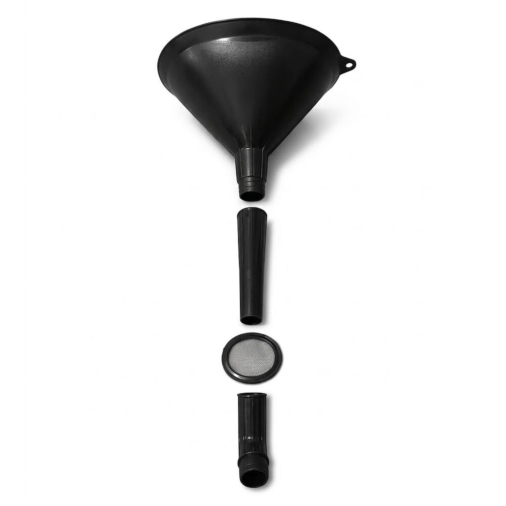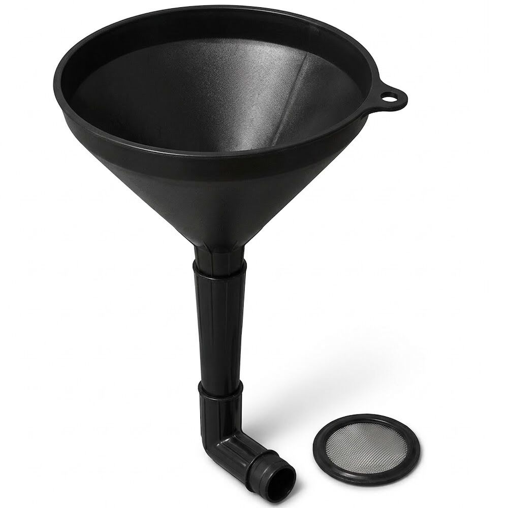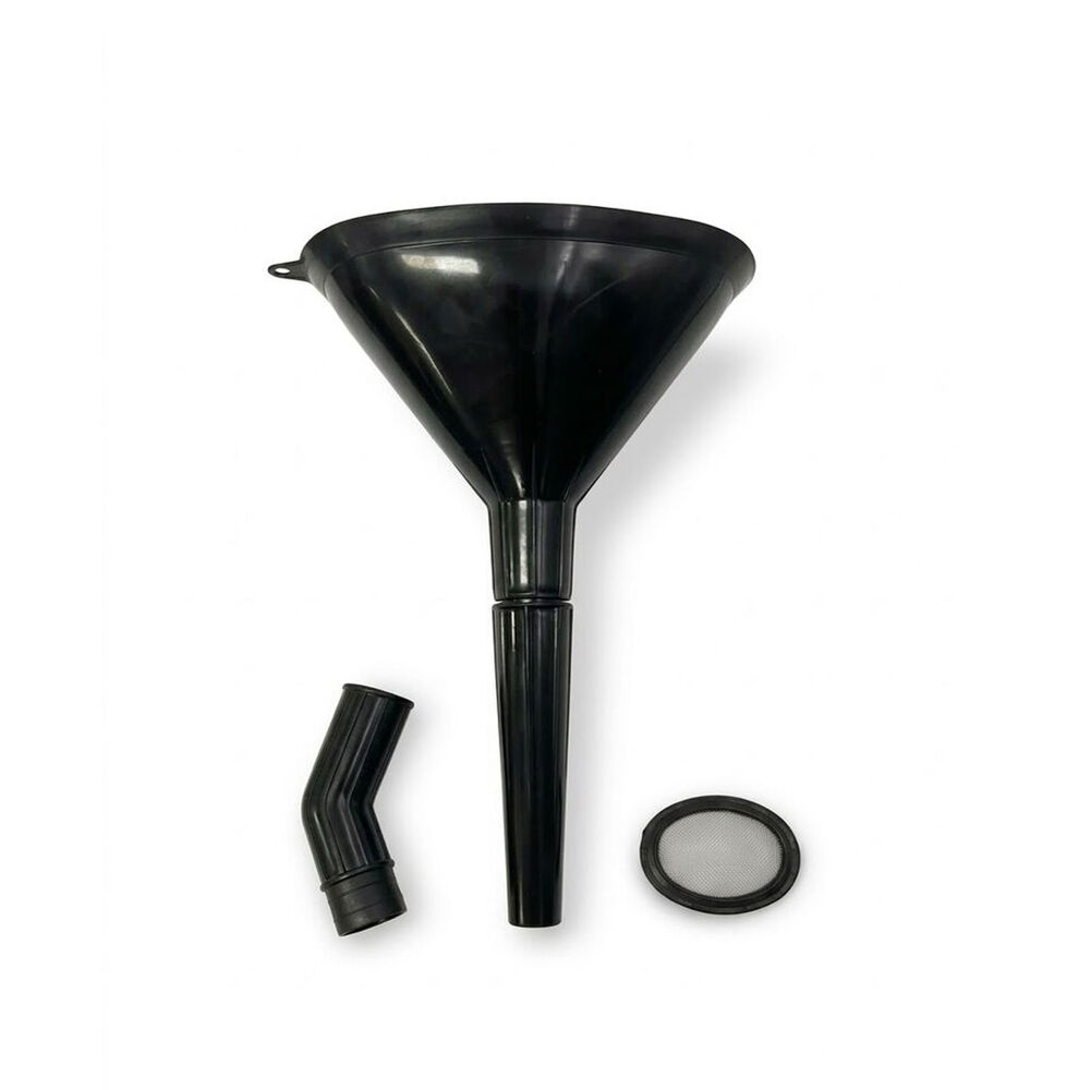 Constructed from durable, chemical-resistant polypropylene, this funnel features a removable mesh strainer that catches dirt and debris before it can damage your motor. Whether you're working in a tight engine bay or refilling a small fuel tank, this 3-in-1 set adapts to your specific needs, ensuring a clean and precise pour every time.