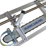 This tool has a parallel bar that can have its distance adjusted from the chainsaw bar to provide different thickness slabs. The first slab is cut by using a couple of guide rails placed and secured onto the top of the log. You can then mill slabs between 1/2" to 13" thick.