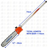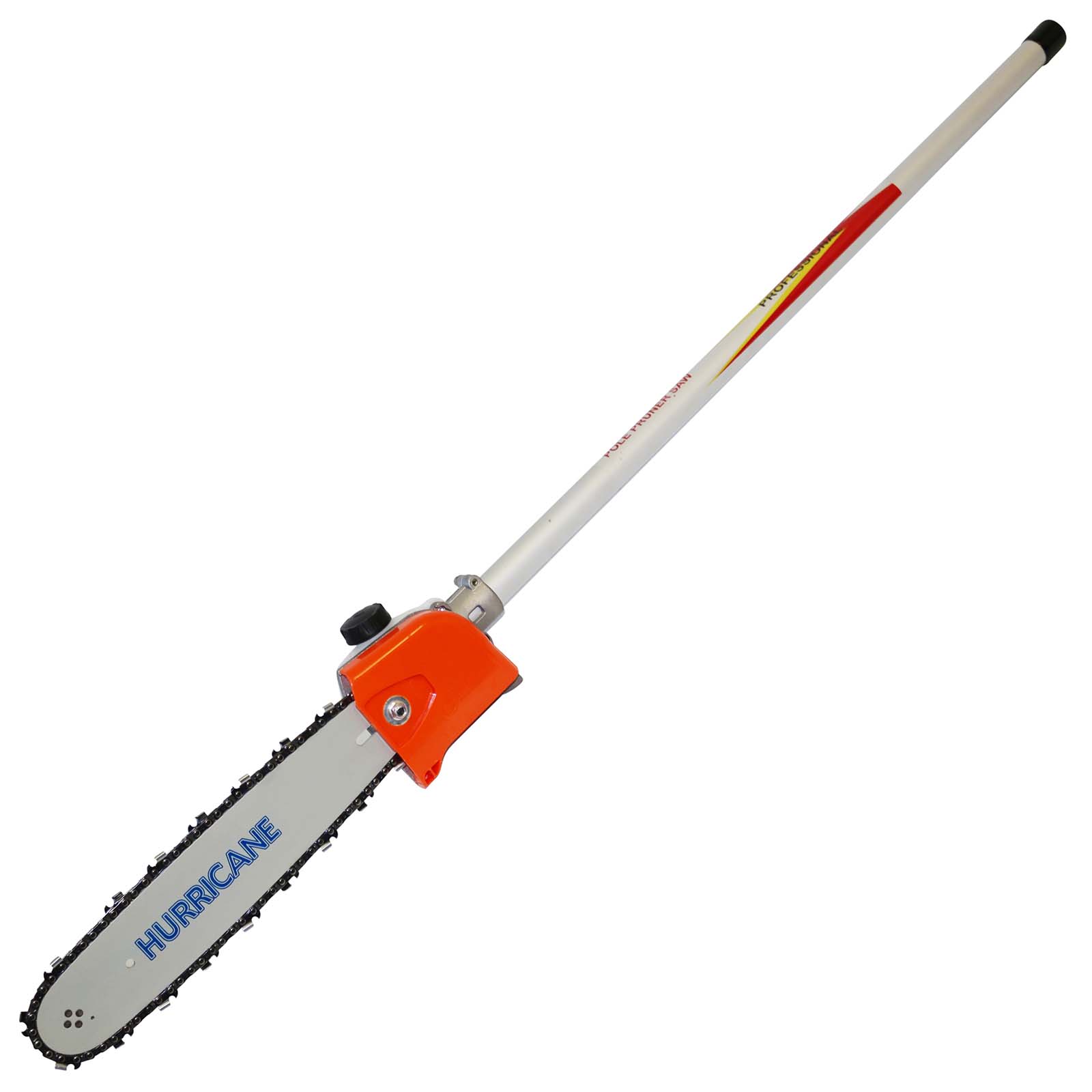 This is a Pole Saw attachment complete with a quality Hurricane 12" bar & chain to suit our 62cc Perla Barb Multi Tool. It is compatible with other models and brands that use the same shaft connection and a 9 spline star shaft.