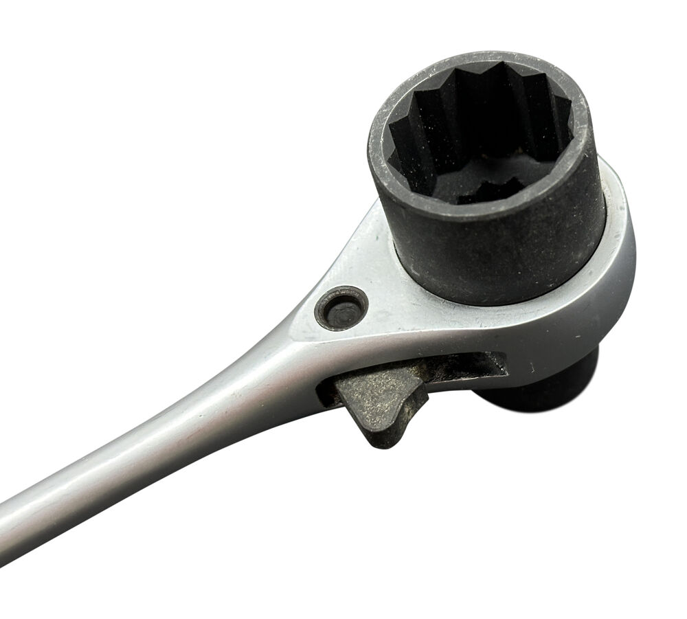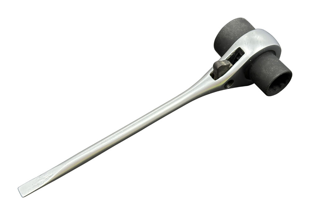 Upgrade your chainsaw maintenance with this compact, professional-grade Ratchet Chainsaw Wrench. Featuring dual-size sockets (13mm & 19mm), a built-in ratcheting mechanism, and a flathead chain adjuster and bar-groove cleaning tip, this all-in-one tool is designed for both field use and workshop repair.