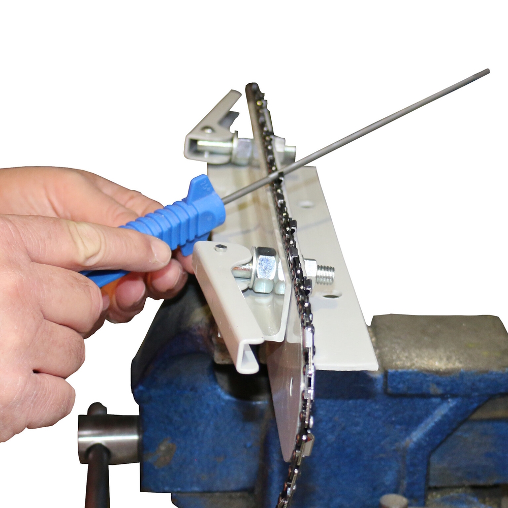 This new Saw Chain Vise can be mounted using a bench vise or it can also be bolted down directly to your workbench. It is sturdy and very easy to assemble (printed instructions included).